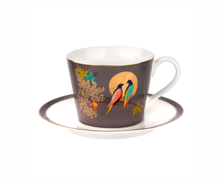 эта темно-серая чайная чашка и блюдце из коллекции Chelsea от Sara Miller London Portmeirion излучают роскошь.