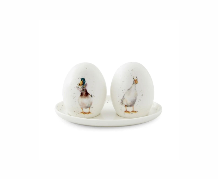 Добавьте индивидуальности вашим трапезам с помощью этого набора для соли и перца Wrendale Designs из Royal Worcester. Изготовленный из тонкого костяного фарфора, набор включает в себя два шейкера в форме яйца и поднос, чтобы хранить их вместе, когда они не используются. Разработанные художницей Ханной Дейл, шейкеры украшены двумя великолепными иллюстрациями уток, которые заставят вас улыбнуться. Сочетайте с соответствующей масленкой, подставкой для ложки и столовыми приборами из коллекции, чтобы создать набор, который можно смешивать и сочетать.