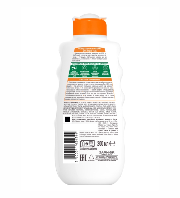 Подходит для лица и тела. Длительное пребывание на солнце опасно, даже если вы используете солнцезащитное средство, потому что оно не даёт 100%-ную защиту. Не рекомендуется пребывание на солнце в часы максимальной солнечной активности. Наносите средство непосредственно перед выходом на солнце. Регулярно возобновляйте нанесение средства для поддержания защиты (особенно после того как вы искупались, вытерлись полотенцем или вспотели). Используйте дополнительную защиту (панаму, очки, футболку). Не наносите на область вокруг глаз. В случае попадания в глаза, немедленно обильно промойте водой. Избегайте контакта с одеждой до полного впитывания.