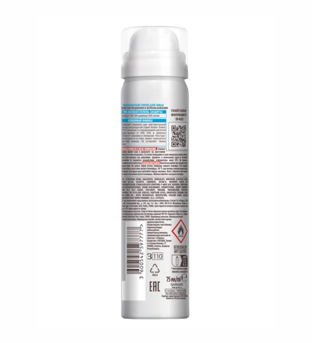 Разработанный специально для чувствительной кожи лица солнцезащитный спрей Ambre Solaire SPF 50+ с витамином Е и гиалуроновой кислотой
