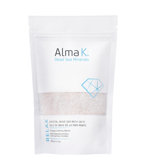 Соль Мертвого моря, богатая минералами, помогает расслабиться и увлажняет кожу, восстанавливая её естественную гладкость. Соль для ванны Alma K. (260 гр.), обогащенная экстрактом ромашки, также успокаивает, питает и смягчает кожу.