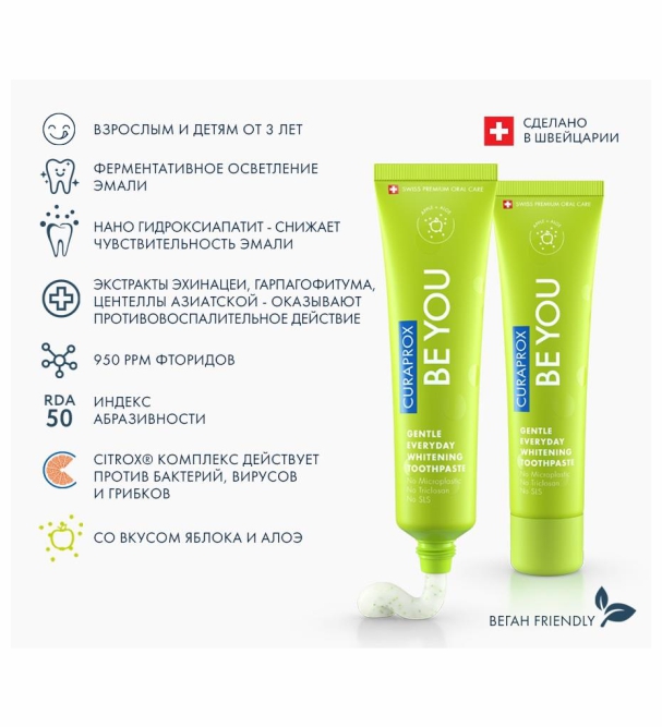 ЗУБНАЯ ПАСТА BE YOU СО ВКУСОМ ЯБЛОКА И АЛОЭ
