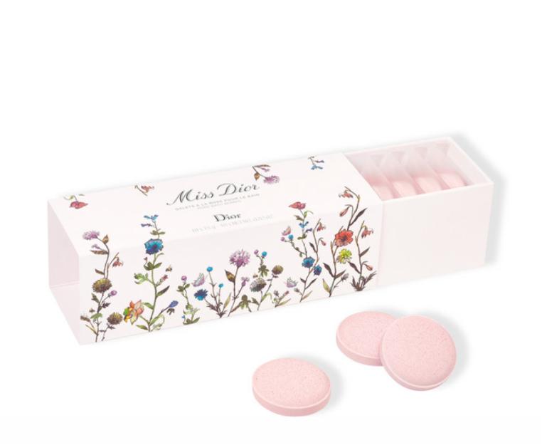 Бомбочки наполнены розовым маслом, а при контакте с водой растворяются и шипят, усиливая расслабляющий эффект цветочным ароматом Miss Dior.