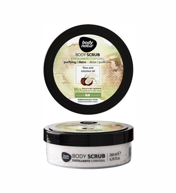 Детоксифицирующий скраб для тела с частицами среднего размера в сочетании с мелкими зернами, которые мягко и эффективно отшелушивают, подходит для всех типов кожи.