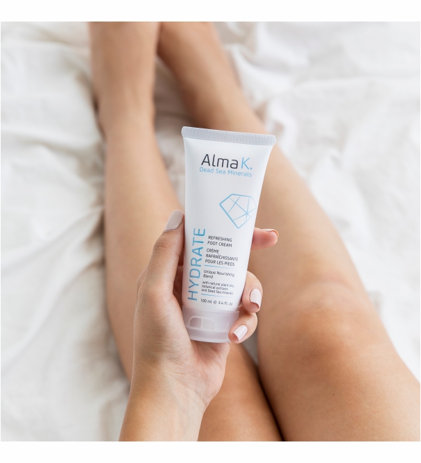 Легкий, освежающий крем для ног Alma K. с минералами Мёртвого моря, натуральными экстрактами и маслами питает, увлажняет, успокаивает и помогает восстановить кожу ног. Масло ши устраняет сухость, а масло перечной мяты дарит уставшим стопам приятное ощущение свежести. Крем с приятной текстурой быстро впитывается, не оставляя липкости. Способ применения: