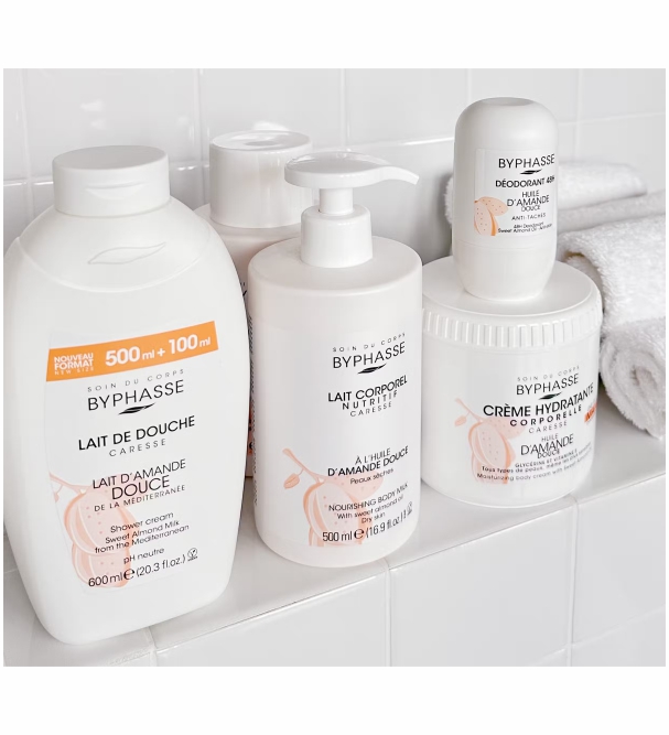Питательный лосьон для тела Byphasse с маслом сладкого миндаля питает и смягчает кожу, оставляя ее приятно ароматной. ПРЕИМУЩЕСТВА