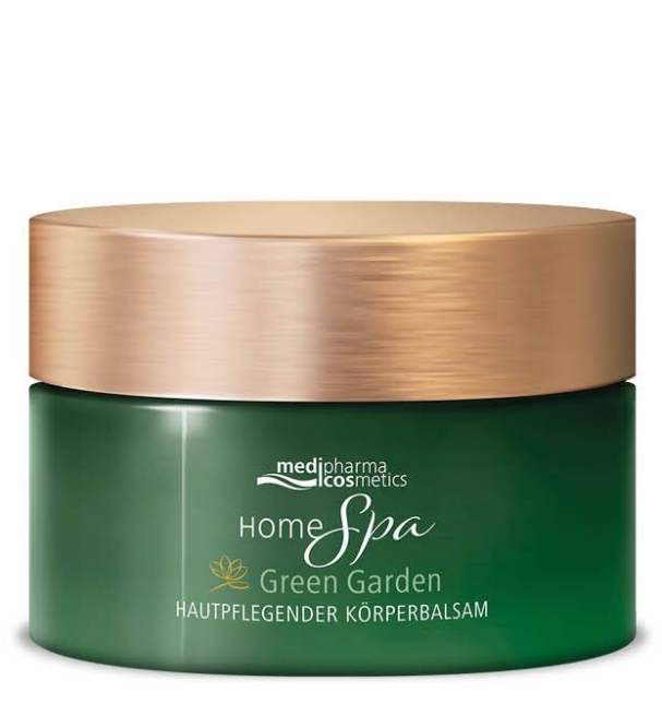 Home Spa Зеленый сад бальзам для тела от medipharma cosmetics мягко питает вашу кожу. Она получает длительное питание от масла ши, пантенола и экстрактов органического эвкалипта. Наносите на кожу и мягко втирайте утром и вечером по мере необходимости. Быстро впитывается и не оставляет жирного блеска. Состав: