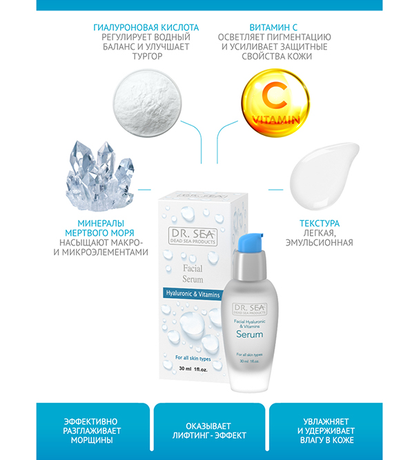 DR. SEA FACIAL HYALURONIC & VITAMINS SERUM / ПОДТЯГИВАЮЩАЯ СЫВОРОТКА ДЛЯ ЛИЦА