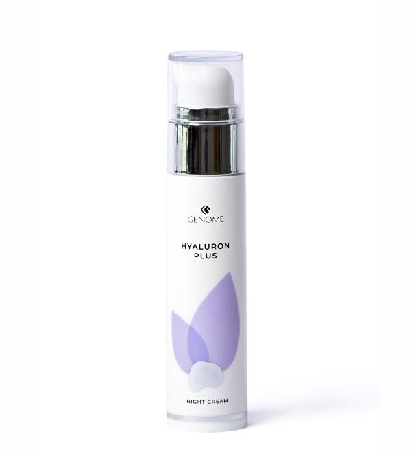 Питательный ночной крем с гиалуроновой кислотой, ниацинамидом, экстрактом алоэ вера, маслами авокадо, жожоба и миндаля (витамины А, B2, D, Е).