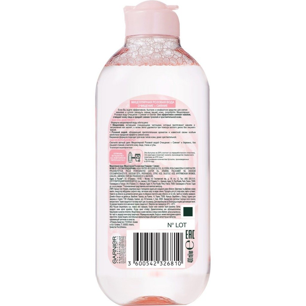 Мицеллярная вода Garnier Мицеллярная Розовая вода Очищение+Сияние для тусклой и чувствительной кожи
