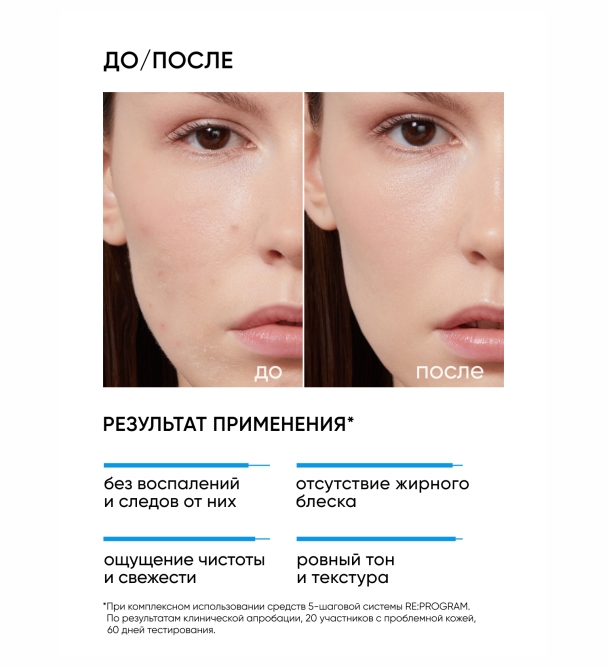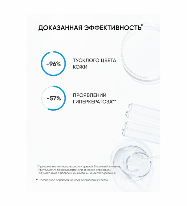 Активная формула с энзимно-кислотным комплексом глубоко очищает поры, деликатно растворяет слой мертвых клеток, делая последующее нанесение средств ухода более эффективным. В результате кожа становится гладкой, ее тон и текстура выравниваются, нормализуется работа сальных желез, за счет чего воспаления проходят, а черные точки становятся почти незаметными. Способ применения: