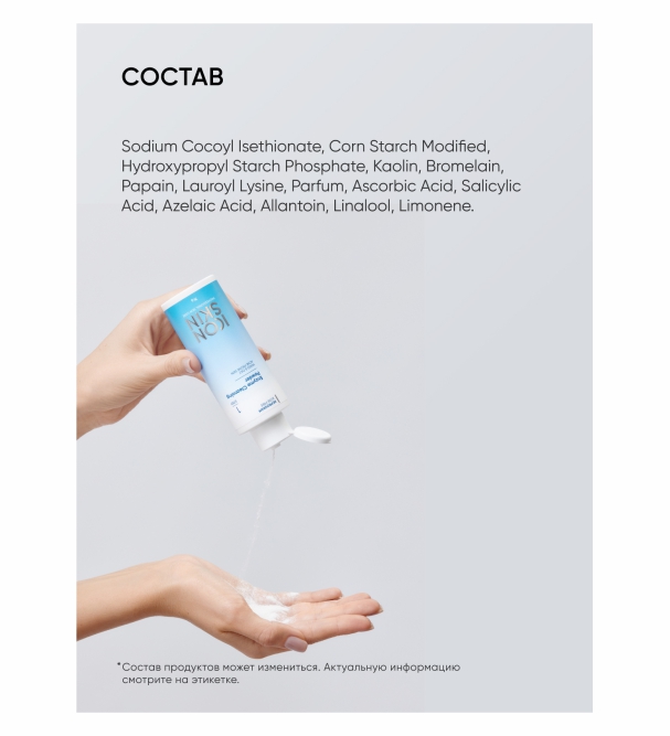 Мелкодисперсная пудра при контакте с водой образует воздушную пенку для умывания, которая интенсивно, но бережно удаляет загрязнения, делая кожу гладкой и свежей.