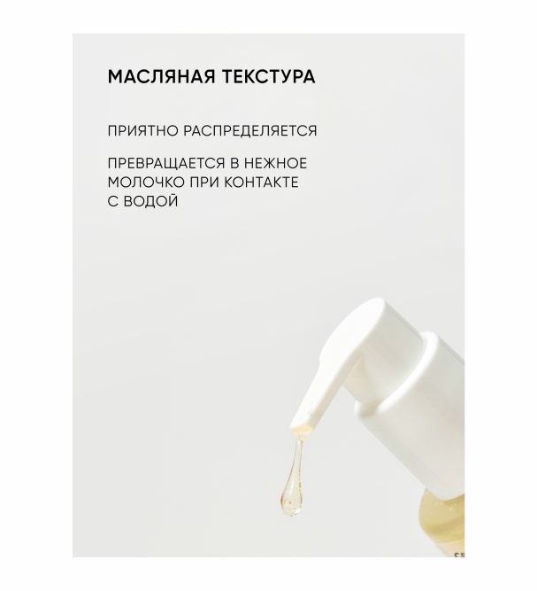 Масло обладает шелковистой текстурой, которая приятно распределяется и легко скользит по коже. При контакте с водой она превращается в нежное молочко, которое не нарушает естественный защитный барьер кожи и сохраняет ощущение увлажненности даже после смывания. Способ применения: