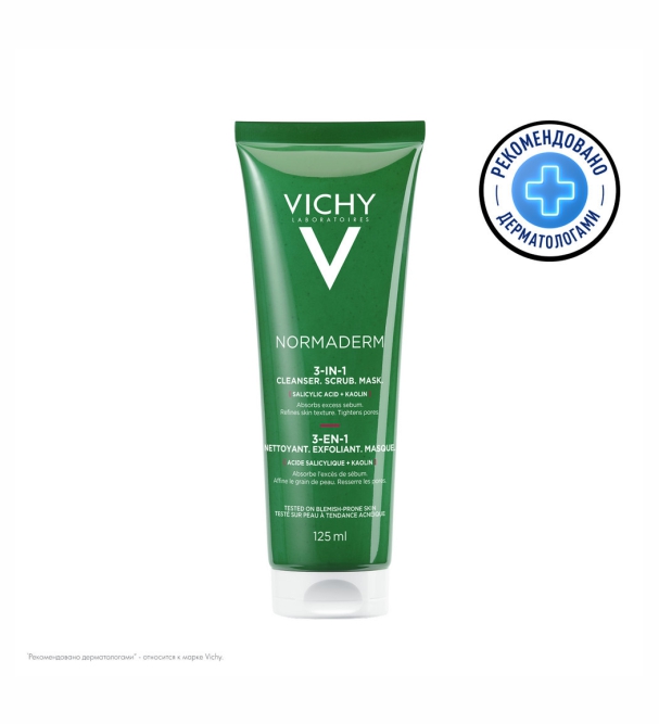 VICHY NORMADERM Средство 3-в-1 Гель-Скраб-Маска для интенсивного очищения жирной проблемной кожи Средство 3-в-1 можно использовать как: