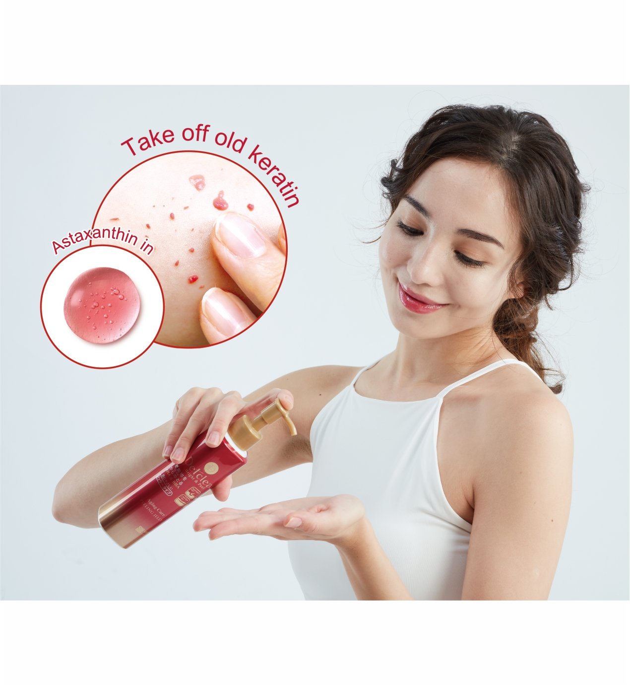 Улучшает проникновение активных компонентов средств по уходу за кожей лица. В составе три группы активных действующих компонентов: АНА (альфа-гидрооксикислоты) входят в состав таких фруктовых экстрактов, как экстракты апельсина, груши, ягод черники и малины, лимона, яблока, винограда известны своими очищающими, подтягивающими и сужающими поры, а также стимулирующими процессы регенерации и обновление клеток эпидермиса свойствами. ВНА (бета-гидрооксикислоты) входят в состав вытяжки из коры плакучей ивы смягчают ороговевшие слои клеток эпидермиса с повышенным содержанием меланина, облегчая и ускоряя их удаление. Комплекс компонентов для антивозрастного ухода астаксантин, производные ретинола, коэнзим Q10, витамин С, гиалуроновая кислота, коллаген, церамиды NG, NP, AP , соевый стерол, токоферол).