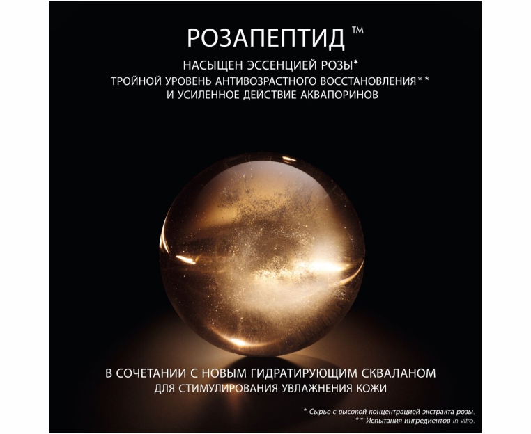 Вдохновленная Гранвильской розой, способной противостоять засухе, адаптируя свой водный поток, формула лосьона содержит розапептид™, который корректирует признаки старения, и интенсивно увлажняющий сквалан, необходимый для восстановления и эластичности кожи, и помогает укрепить кожный барьер.
