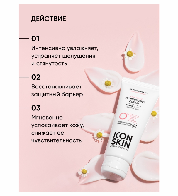 Дерматологический увлажняющий крем Aqua Repair серии Derma Therapy – идеальный ежедневный уход для нормальной и сухой кожи, включая чувствительную. Крем моментально успокаивает и насыщает кожу влагой, устраняет сухость и шелушения и снимает покраснения. Благодаря высокому содержанию фосфолипидов и фитостеролов крем укрепляет защитный барьер, кожа меньше теряет влагу и лучше защищена от воздействия агрессивных факторов окружающей среды. Богатая тающая текстура приятно распределяется и не утяжеляет кожу.