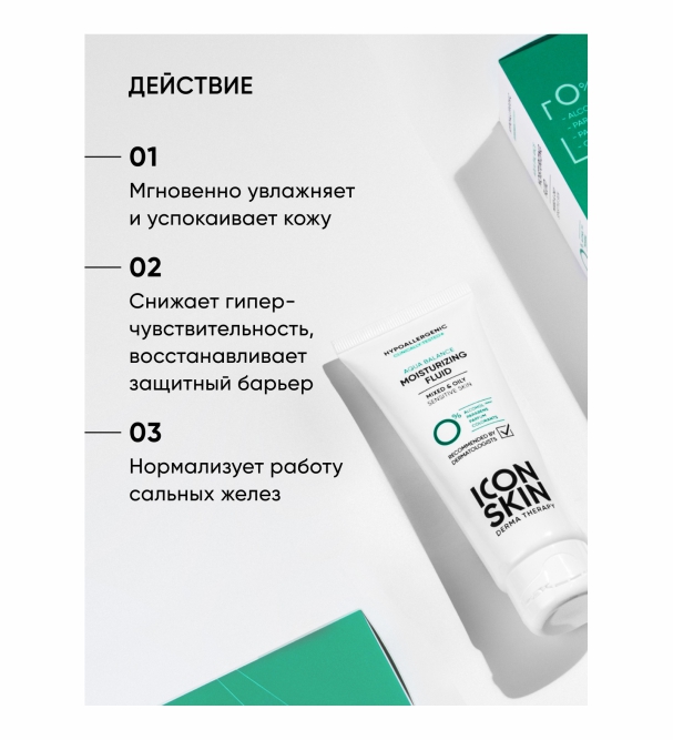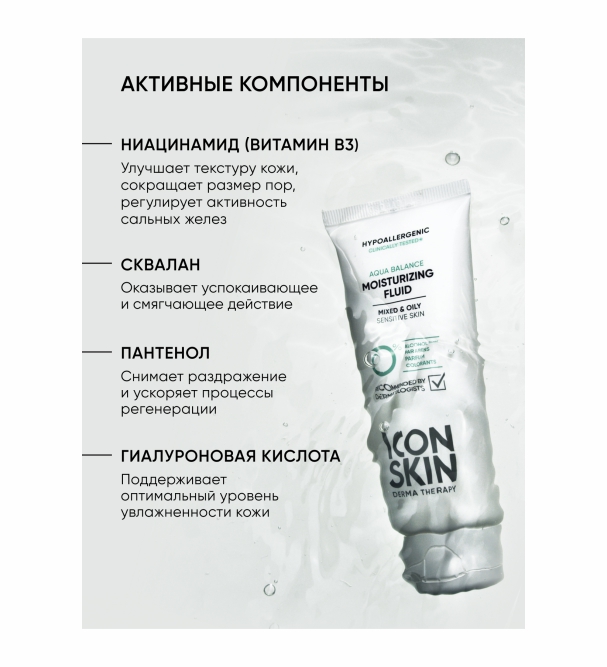 Дерматологический увлажняющий флюид Aqua Balance серии Derma Therapy разработан специально для ежедневного ухода для чувствительной комбинированной и жирной кожи. Флюид мгновенно успокаивает кожу и деликатно корректирует гиперактивность сальных желез. Благодаря содержанию сквалана и фитостеролов восстанавливает естественный защитный барьер, кожа меньше теряет влагу и лучше защищена от воздействия агрессивных факторов окружающей среды. Легкая текстура обеспечивает длительное ощущение комфорта без жирности и липкости. Способ применения: