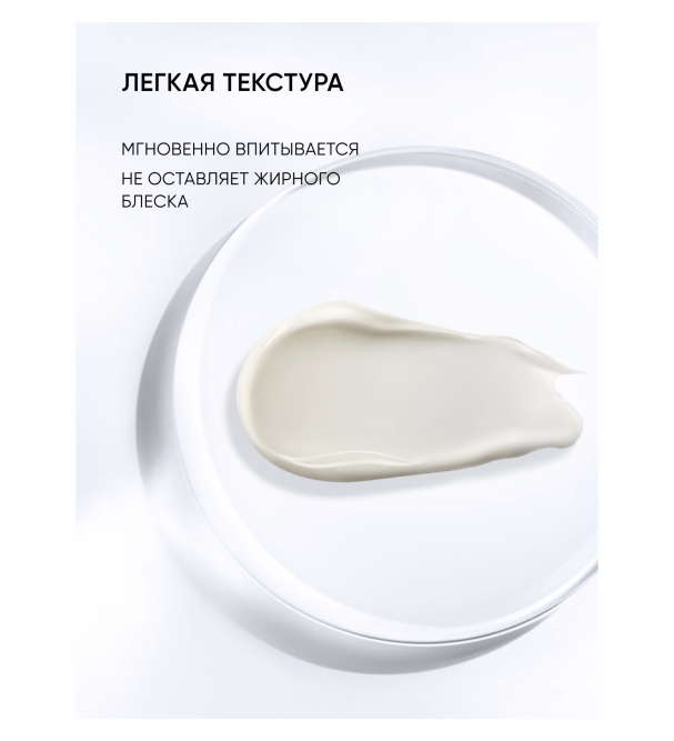 Крем с легкой текстурой увлажняет кожу, помогает нормализовать выработку себума и предотвращает появление жирного блеска.