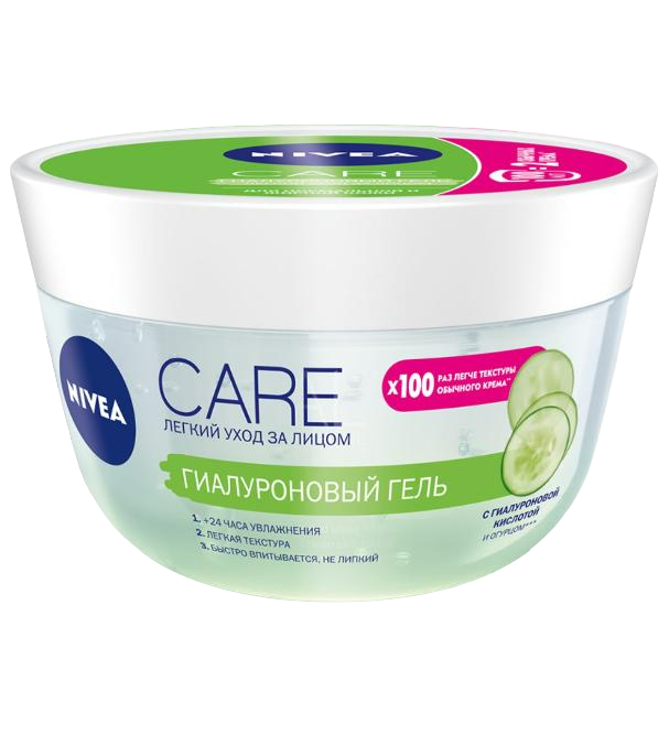 Новое средство для ухода за кожей с гиалуроновой кислотой от Nivea — спасение для сухой, обезвоженной, жирной и проблемной кожи. Легкая невесомая текстура гидро-геля быстро впитывается и хорошо увлажняет кожу лица 24 часа. Не оставляет ощущения липкой или масляной пленки. Не закупоривает поры. Показания к применению: потеря тонуса и упругости кожи, обезвоженность, реактивность и чувствительность кожи, состояние сухости, вызванное внешними причинами (например, агрессивной окружающей средой или пребыванием на солнце). Гиалуроновый гель для лица Nivea Care с гиалуроновой кислотой и огуречным соком идеально подходит для ухода за нормальной, комбинированной и склонной к жирности кожи. Продукт не содержит масел, спирта и парабенов и на 90% состоит из ингредиентов натурального происхождения. Применение: Аккуратными и нежными массирующими движениями нанесите небольшое количество геля на сухую и очищенную кожу лица, подождите 60 секунд, пока продукт полностью впитается. |
