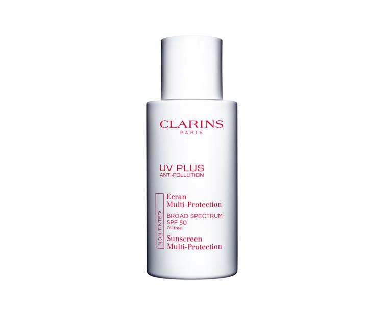 Регулярное использование средств с SPF помогает защитить кожу от УФ-излучения, сохранить её молодость и здоровье. Чтобы защитить кожу от негативных факторов окружающей среды, лаборатория Clarins разработала защитный флюид-экран для лица UV Plus SPF 50 с ультралегкой текстурой. Запатентованный комплекс Anti-Pollution в составе крема для лица с SPF 50 отражает негативные воздействия ультрафиолетового излучения, загрязнений и свободных радикалов. Органические экстракты канталупской дыни и альпийского подлесника оказывают мощный антиоксидантный эффект.