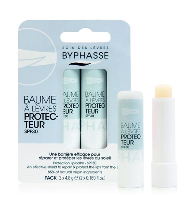 Byphasse Бальзам для губ Protection Lip Balm - восстанавливающий бальзам для губ защищает губы как от ежедневного пребывания на солнце, так и от холода. Его формула содержит фильтры SPF30, UVB / UVA для максимальной защиты, с богатой текстурой, которая глубоко восстанавливает сухие и потрескавшиеся губы. Содержит витамины А и Е, масло ши, пчелиный воск и масло виноградных косточек.