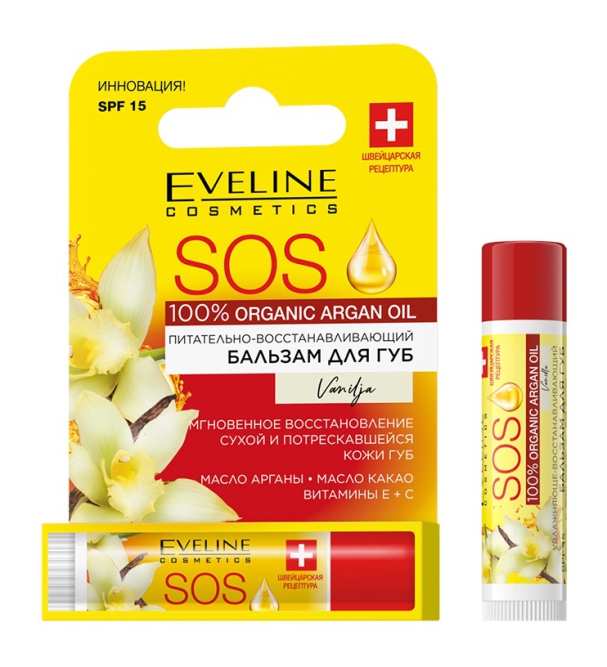 Eveline Organic Argan Oil/Бальзам для губ - Vanilla SOS 100%