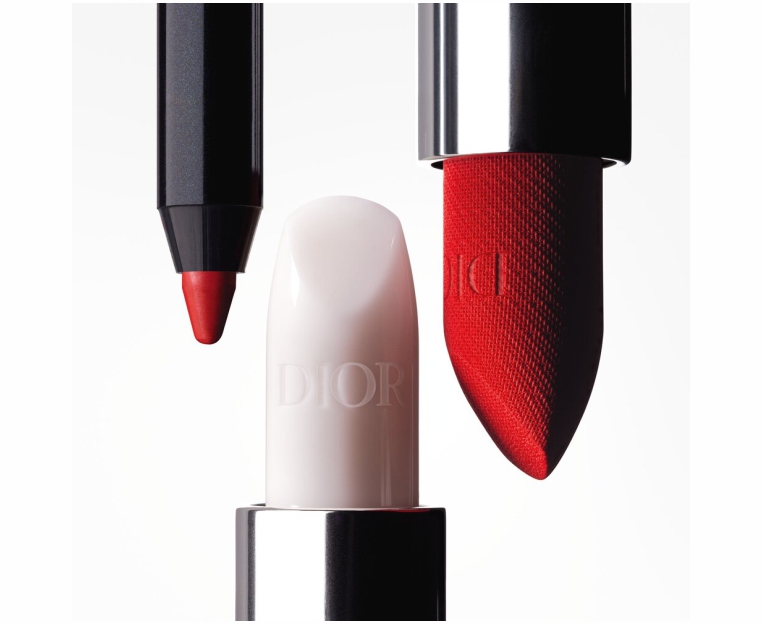 Новый бальзам Rouge Dior, украшен новой фирменной полосой с инициалами CD, отражающими приталенный образ с подиума Дома.
