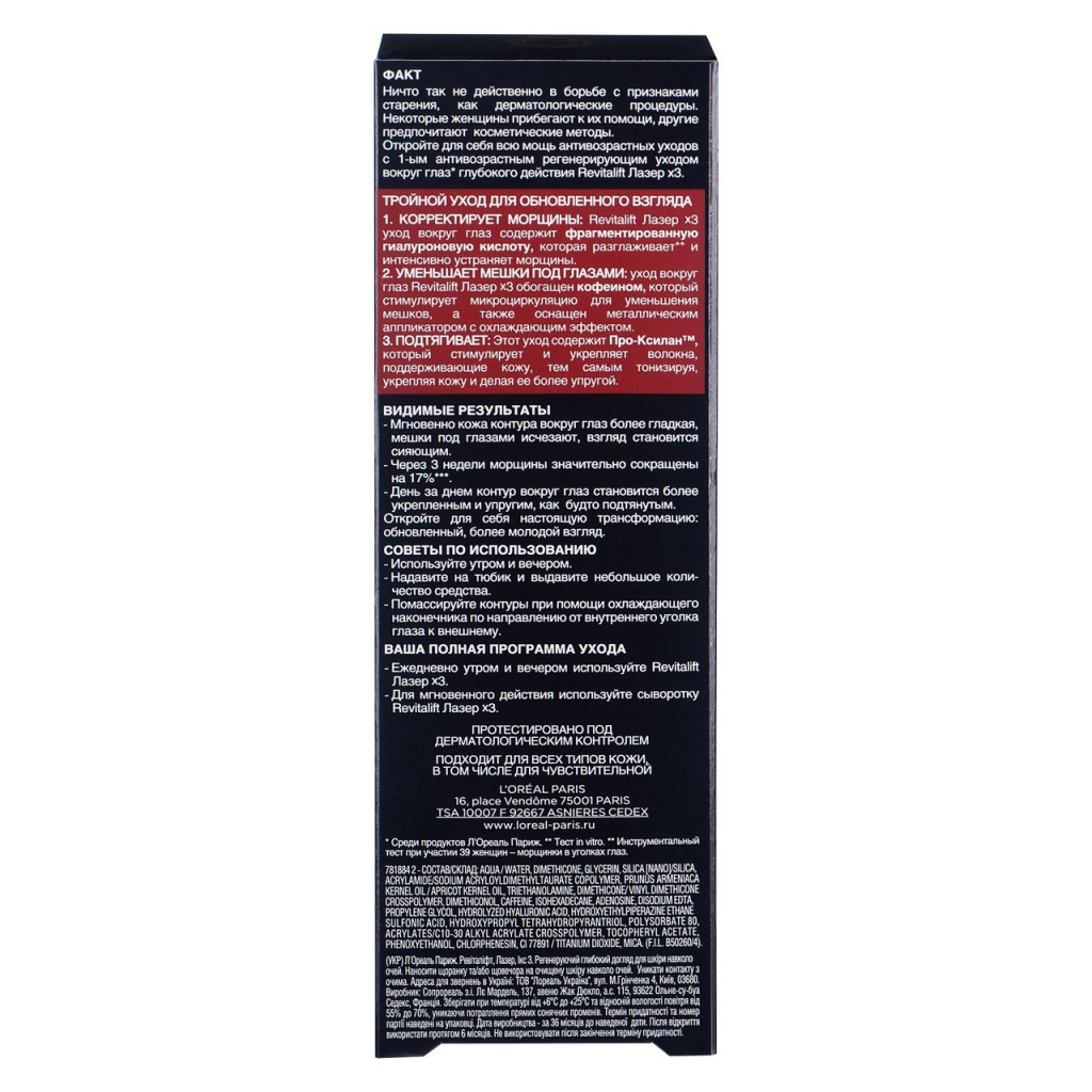 Крем для кожи вокруг глаз L`Oreal Paris / Антивозрастной крем Ревиталифт Лазер х3 вокруг глаз
