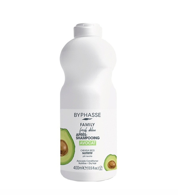 Кондиционер для волос из новой линейки FAMILY FRESH DELICE от испанского бренда Byphasse - эффективно питает, увлажняет и регенерирует волосы. Специально разработанная активная формула бальзама для волос возвращает к жизни поврежденные и тусклые волосы: восстанавливает их структуру, защищает, укрепляет и ускоряет рост. При регулярном использовании кондиционера для волос достигается эффект ухоженных, здоровых и шелковистых волос. Объем 400 мл и маленький расход позволит надолго забыть о покупке нового. Кондиционер с экстрактом авокадо – питает и восстанавливает изнутри. Экстракт авокадо регенерирует поврежденный волос, глубоко увлажняет и обладает антиоксидантными свойствами, защищает волосы от внешнего воздействия. Витамины С и В5 укрепляют волосяную луковицу, препятствуя выпадению и ломкости, и стимулирую рост. Нейтральный pH позволяет использовать всей семьей. Применение: