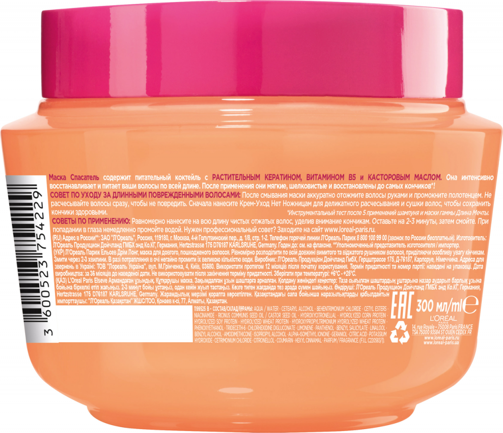 Маска для волос L'Oreal Paris / Маска "Elseve, Длина Мечты", для длинных поврежденных волос