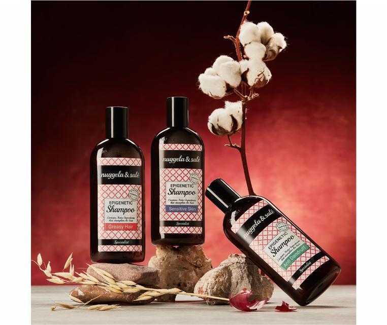 Эпигенетический шампунь для чувствительной кожи by Nuggela & Sulé, успокаивает, увлажняет и улучшает кожу головы. Благодаря своему эпигенетическому свойству, шампунь укрепляет волосы, улучшая их качество.