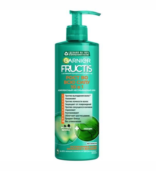 Легкая текстура комплексного крема от FRUCTIS, обогащенная растительным глицерином с экстрактом яблока, возвращает силу ослабленным волосам, склонным к выпадению. Доказано: на 85% меньше выпадения волос из-за ломкости при расчесывании.Экстракт сахарного тростника – увлажняет , тонизирует, восстанавливает волосы. Содержит витамины группы В, витамин С, калий, магний, железо, фосфор, аминокислоты.