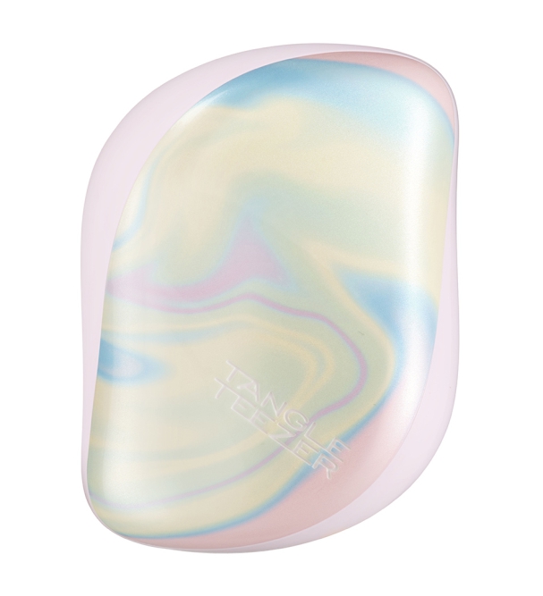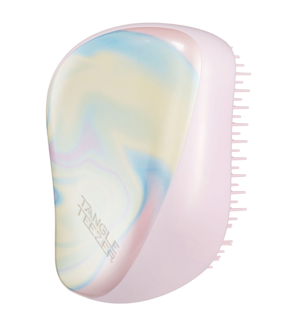 Tangle Teezer Compact Styler Ice Cream Swirl — компактная версия знаменитой расчески Tangle Teezer, которая поможет поправить прическу в любой ситуации! Представлена в нежно-розовом корпусе с голубыми и желтыми переливами, имитирующими текстуру мороженого. Гибкие двухуровневые зубчики бережно распутывают волосы, не повреждая их. Благодаря компактной форме расческа поместится даже в небольшую сумочку, а плотно прилегающая крышка защитит зубчики от пыли и повреждений. Результат применения — гладкие и блестящие волосы. Подходит для всех типов волос. Не используйте с феном.