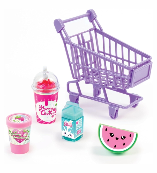 Прогуляйтесь по гламурному отделу и найдите сладкий выбор ароматных блесков для губ. Наслаждайтесь арбузом, вишней, блеск для губ с ароматом клубники и ванили в очаровательных баночках в форме закусок. В комплекте: миниатюрная тележка для покупок