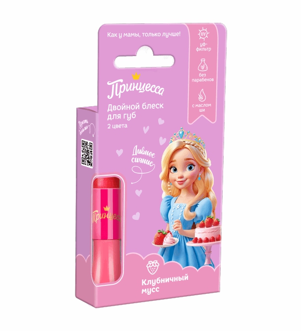Блеск для губ Принцесса / Блеск для губ двойной Клубничный мусс