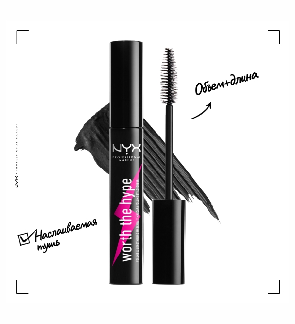 NYX PROFESSIONAL MAKEUP WORTH THE HYPE VOLUMIZING & LENGTHENING MASCARA / ТУШЬ ДЛЯ РЕСНИЦ (7 мл.)