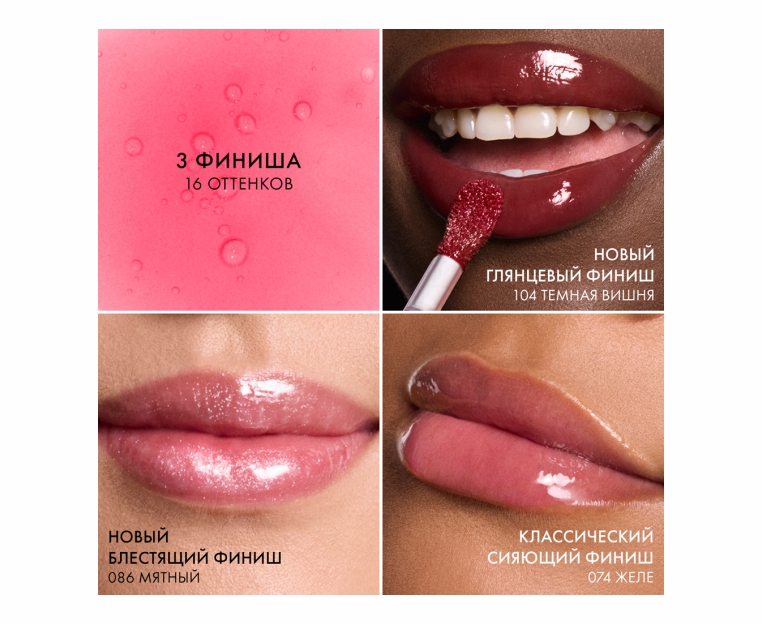 Доступно 16 оттенков в трёх финишах: сияющем, мерцающем и глянцевом.