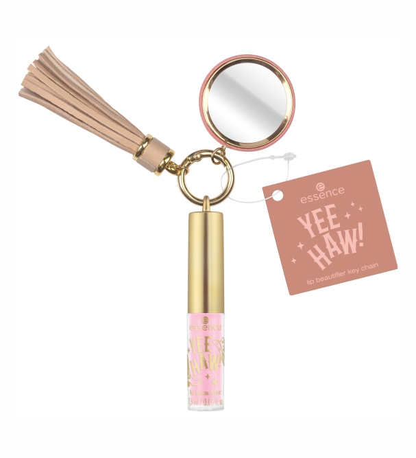 Блеск для губ в форме брелка YEE HAW! 01 Boots, Hat, Go! от essence - это универсальное средство для губ, незаменимое в дороге. Прозрачная текстура с частицами розового золота придает губам глянцевое сияние с нежным блеском. Встроенное зеркало обеспечивает легкое нанесение в любое время и в любом месте. Прикрепленный к ключам или сумочке, он станет идеальным аксессуаром для губ, которые всегда готовы сиять.