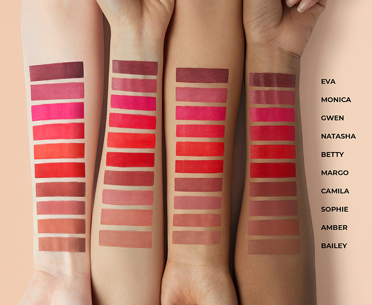Доступен в 10 оттенках для губ.