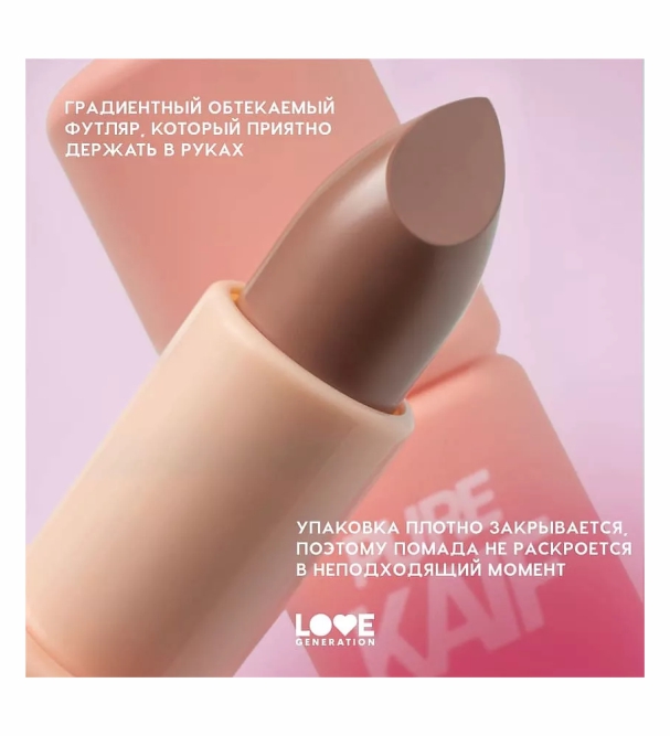 Вот он, чистый кайф для твоих губ! Помада-стик в градиентной обтекаемой упаковке, которую хочется доставать из сумочки снова и снова. Продукт с кремовой пигментированной текстурой равномерно прокрашивает губы и оставляет комфортный глянцевый финиш. В ассортименте есть семь нюдовых оттенков, чтобы ты смогла выбрать свой идеальный цвет, а также три ярких тона: красный, винный и насыщенный розовый. Способ применения: