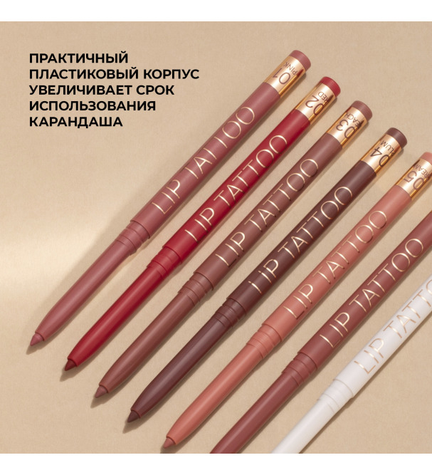 Для большего объема губ выделите контур карандашом более темного оттенка. Бесцветный универсальный тон 07 используйте, чтобы продлить стойкость макияжа, предотвратить растекание помады. А также в качестве праймера для любых продуктов для губ.