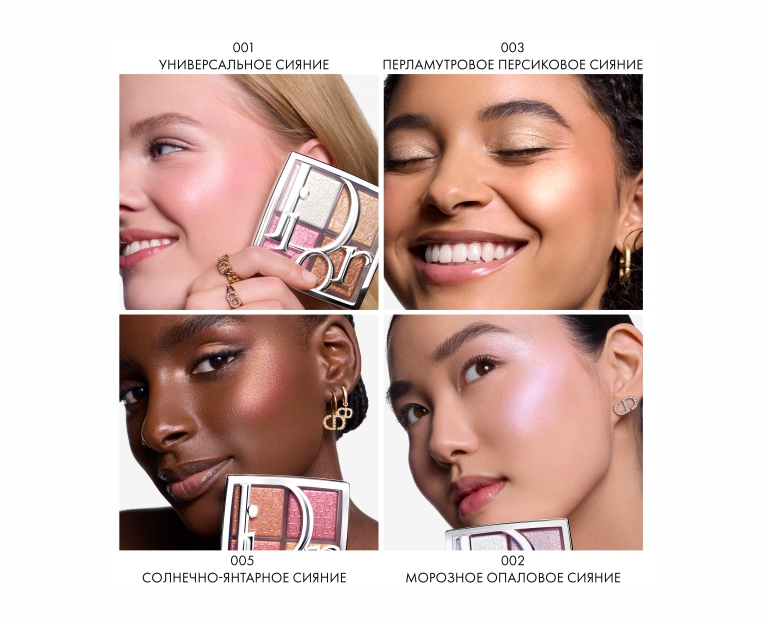 Культовая палетка хайлайтеров Dior для создания безграничного блеска. Обновленная универсальная палетка Dior Backstage Glow Maximizer подчёркивает лицо, глаза и зону декольте, предлагая ещё больше вариантов финишей: перламутровое, металлическое, глиттерное и дуохромное.
