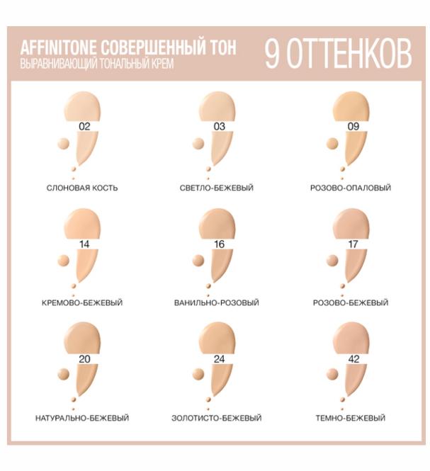 Maybelline New York Тональный крем для лица "Affinitone", выравнивающий и увлажняющий, с аргановым маслом, оттенок 02, Слоновая кость, 30 мл. Для всех типов кожи, Сухая.
