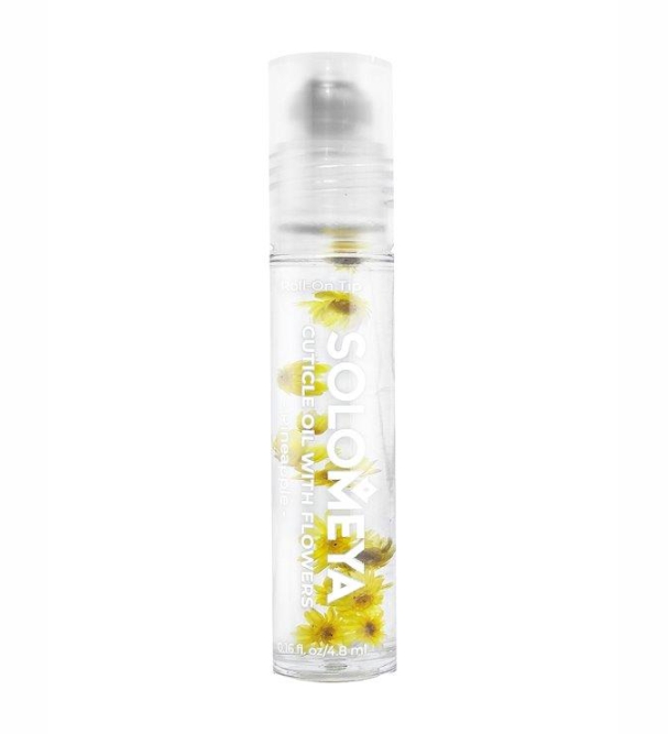 Масло для кутикулы Solomeya с роликовым аппликатором и натуральными цветами внутри моментально восстанавливает и увлажняет кутикулу, придает рукам ухоженный вид.