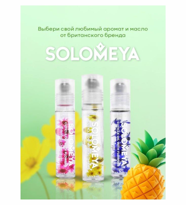 Solomeya Масло для ногтей и кутикулы с роликовым аппликатором и цветами «Сочный Ананас», 4,8 мл