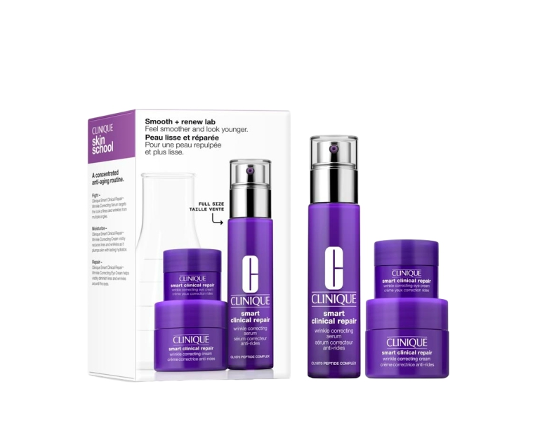Clinique Smart Clinical Repair Wrinkle Correcting Serum in 1oz./30ml; Clinique Smart Clinical Repair Wrinkle Correcting Cream in 0.5oz./15ml; Clinique Smart Clinical Repair Wrinkle Correcting Eye Cream in 0.17oz./5ml