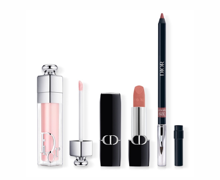 К праздничному сезону Dior объединяет карандаш Rouge Dior Contour, помаду Rouge Dior с бархатным финишем и блеск Dior Addict Lip Maximizer в лимитированной косметичке для макияжа выразительных губ.