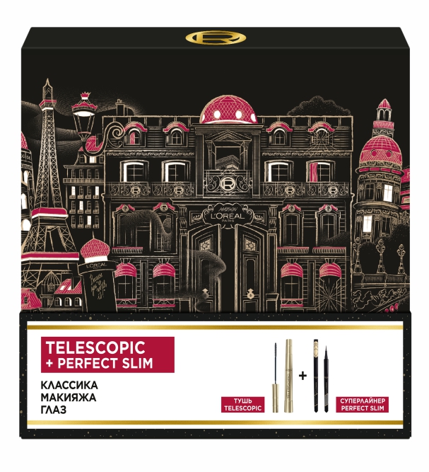 Набор L'Oreal Paris "Классика Макияжа Глаз": Тушь Telescopic + Суперлайнер Perfect Slim 1. Тушь TELESCOPIC от L'Oreal Paris: Специальными зигзагообразными движениями нанесите тушь на ресницы, двигаясь от основания к кончикам ресниц, деликатно их вытягивая. Тушь можно наносить как в один, так и в два слоя для достижения дополнительного эффекта невероятно длинных ресниц; 2. Суперлайнер ""Perfect Slim"": жидкая классическая подводка для макияжа глаз L'Oreal Paris (Лореаль Париж): нарисуйте аккуратную стрелку вдоль линии роста ресниц по направлению от внутреннего уголка глаза к внешнему.