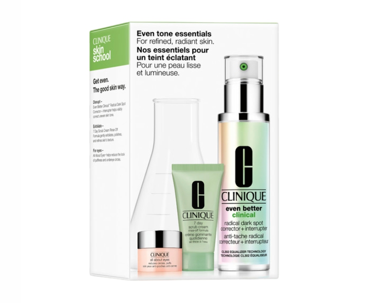 Сыворотка 2-в-1, выравнивающая и совершенствующая тон кожи Clinique Even Better Clinical Radical Dark Spot Corrector + Interrupter, Крем-скраб для кожи лица Clinique 7 Day Scrub Cream Rinse-Off Formula, Крем-гель для ухода за кожей вокруг глаз Clinique All About Eyes